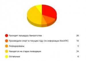 Состояние спиртовой отраслиИз 80 предприятий лишь 10 совершали производственную деятельность в этом годуchart by amcharts.com