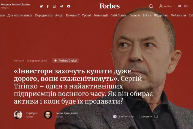 Бизнесмен впервые за долгое время дал большое интервью украинскому Forbes, посвященное инвестициям в послевоенную Украину, после чего на журналиста Бориса Давиденко, который общался с Тигипко, обрушились волны критики. Причина всплеска возмущения — работа банкира в прошлом вице-премьером во времена президентства Виктора Януковича и руководство его предвыборным штабом, а также его третий номер в предвыборном списке «Партии регионов».