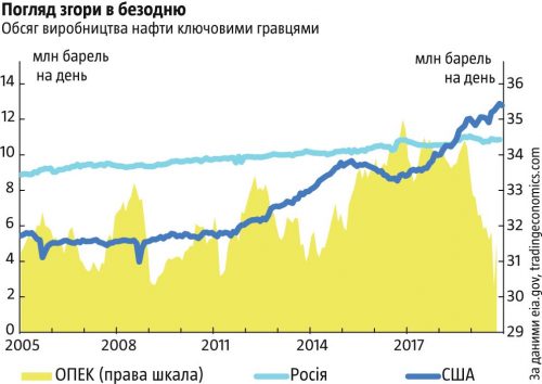 Однако подобные «решения» были временными, поскольку добыча у главных игроков и дальше росла. Больше всего это касается американцев, которые после непродолжительного спада в производстве после 2014-го нарастили объем добычи почти в полтора раза более чем за три года. А с недавних пор годовой прирост добычи американского «черного золота» превышает рост спроса во всем мире. Конфликт между главными игроками стал вопросом времени. Собственно, именно поэтому россияне, комментируя недавний срыв сделки ОПЕК+, не без основания утверждают, что все скоординированные сокращения добычи открывают нишу, которую быстро занимает американская нефть.
