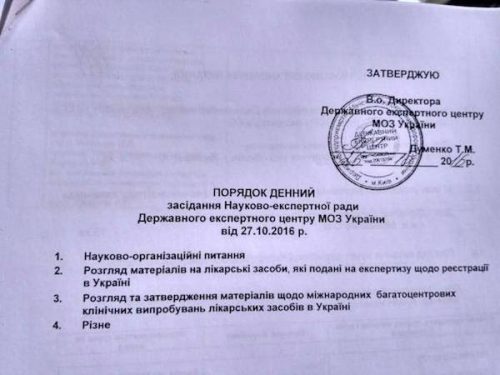 В результате возникшей дискуссии на повышенных тонах 4 экспертов проголосовали против регистрации препарата. Однако большинство экспертов, не желающих портить отношения со столь влиятельной фигурой, как Фещенко, регистрацию поддержало. Теперь регистрацию должны утвердить в МОЗ.
