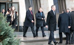 Минск, где сегодня состоится очередной раунд переговоров по Донбассу, прибыли бывший президент Украины Леонид Кучма, специальный представитель ОБСЕ посол Хайди Тальявини и посол РФ в Украине Михаил Зурабов. Об этом сообщает БЕЛТА. Очевидцы сообщают также, что в авто российского посла Михаила Зурабова приехал Виктор Медчедчук, однако официальных подтверждений этой информации пока нет.