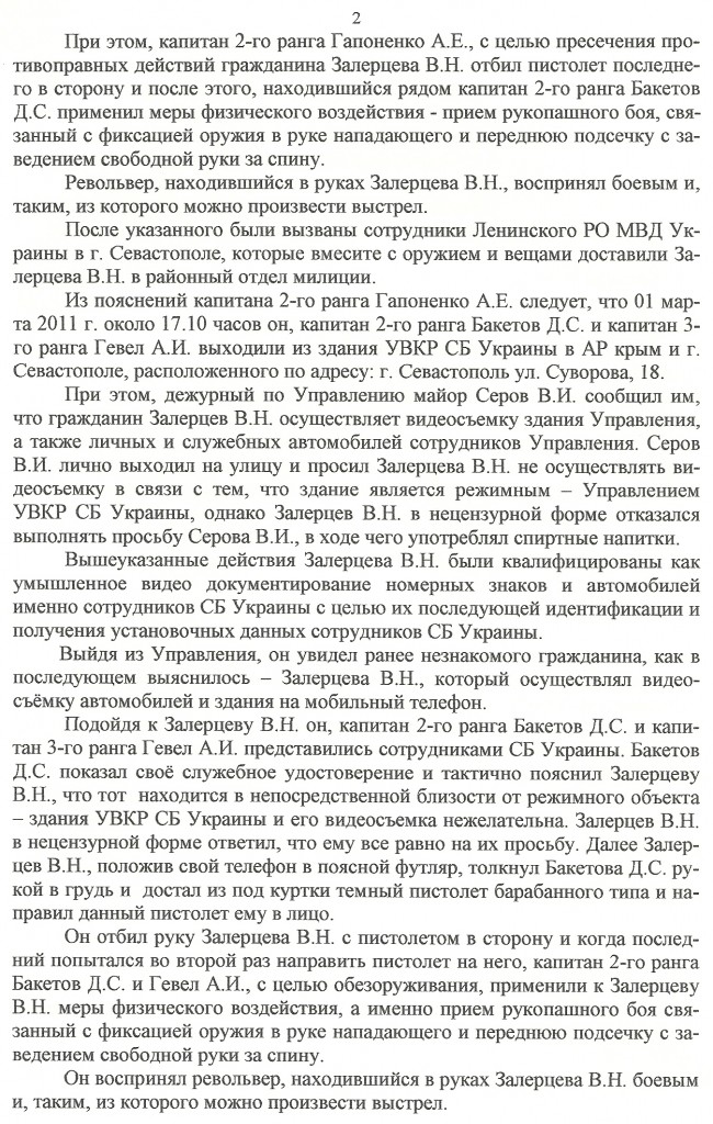 «Сегодня мы получили следующие документы. Обратите внимание на несоответствие некоторых деталей , пистолет был выбит из руки , а потом была рука взята в захват , с целью выбить пистолет …… И оказывается этих горе-воинов было не 4 , а 3. ….