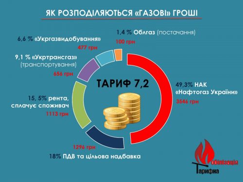 Ключевую роль в этом сыграло новое (с 2014 года) руководство «Нафтогаза» в лице «соросят» Коболева и Витренко. Они ведь не только хотели получать многомиллионные зарплаты, но и стремились вывести «Нафтогаз» на уровень высокорентабельной корпорации – потому что Сорос велел им готовить его к приватизации. И они с энтузиазмом ухватились за идею оплатить десятки миллиардов гривен убытков и выйти на многомиллиардную прибыль за счет кошельков населения страны. Для этого доля Нафтогаза в тарифе была увеличена в сорок раз – с 86 до 3451 гривен! Плюс на украинцев наложили еще 1113 гривен ренты, включив её в стоимость услуг «Укргаздобычи».