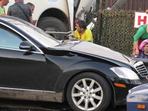 Водитель Mercedes после столкновения выскочил из машины и скрылся с места ДТП в автомобиле Porsche Cayenne, который приехал на место аварии.