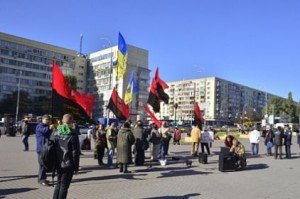 Представители «Конгресса украинских националистов» пикетируют здание Центральной избирательной комиссии в знак протеста против отказа в регистрации большинства кандидатов в народные депутаты от их политической силы