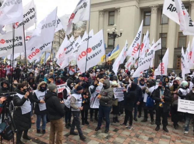 В понедельник, 16 ноября, в Киеве возле Верховной Рады собрались предприниматели на бессрочную акцию «Налоговый майдан».