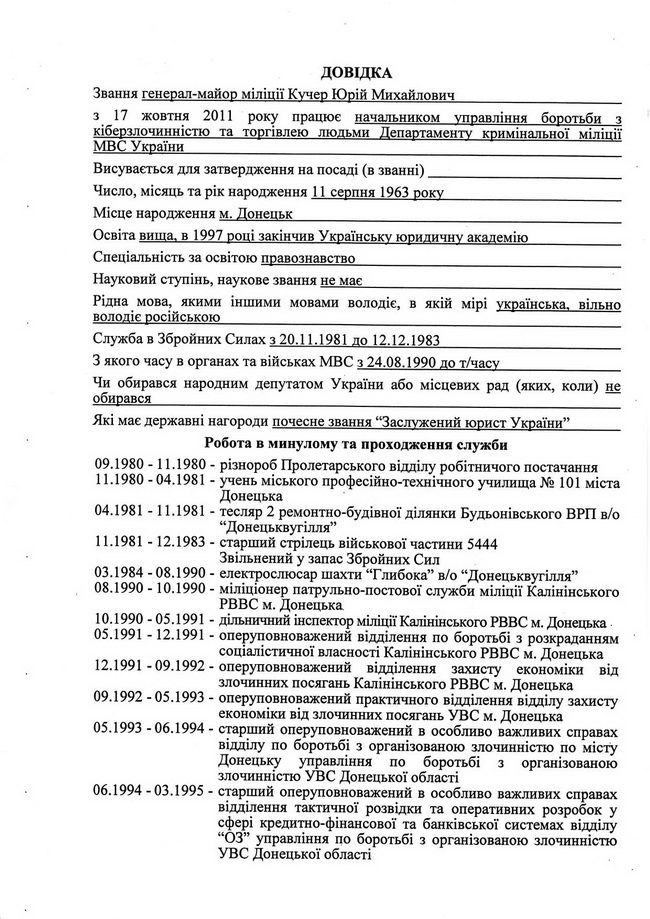Публикация «ТЕМЫ» о крыше киевских проституток в лице руководства Департамента по торговле людьми и киберпреступности наделала шума в МВД. И, как утверждают наши источники, выйди она до смены министра, руководителю Департамента генералу Кучеру пришлось бы освободить кабинет. Но с новым министром «порешали вопрос», а чтобы ни у кого не возникало сомнений в профессионализме и порядочности Кучера, ему приготовили новый подарочек к милицейскому празднику (документы прилагаются).