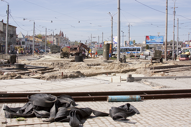 Видите, как десятки рабочих стремятся закончить стройку к началу «Евро-2012»? Я тоже не вижу.