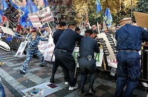 В Украине же оппозиция – по крайней мере, та ее часть, которая сейчас на улицах, – обращается к Виктору Януковичу с вежливой просьбой наложить вето на очередной неправильный закон, который приняла «преступная Верховная Рада» под диктовку «совкового Кабинета министров».