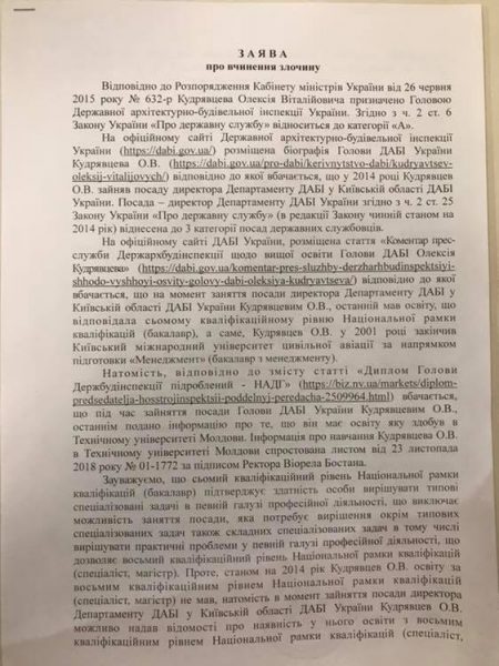 Активисты ГО «Стоп Свавіллю» подали заявление в Печерское отделение полиции относительно поддельного диплома о получении высшего образования в Техническом Университете Молдовы, который предоставил глава ГАСИ Алексей Кудрявцев вступая на должность государственного служащего. Об этом на своей странице в социальной сети Facebook сообщил активист Сергей Северин. Представители ГО «Стоп Свавіллю» требуют возбудить уголовное дело и провести досудебное расследование, в связи с совершением действий главой ГАСИ Кудрявцевым, которые имеют все признаки уголовного правонарушения.