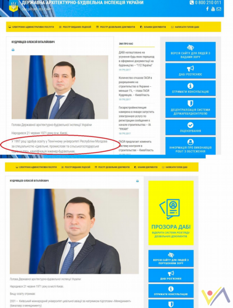 Также информация о получении высшего образования главой ГАСИ Кудрявцевым в Университете Молдовы, до недавнего времени была размещена на официальном сайте ведомства. Но была оперативно удалена после того, как информация о «липовом» дипломе топ-чиновника появилась в СМИ.