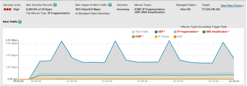 Атаку подтвердил и график нагрузки на сервер сайта Страна.ua в датацентре компании «Воля».