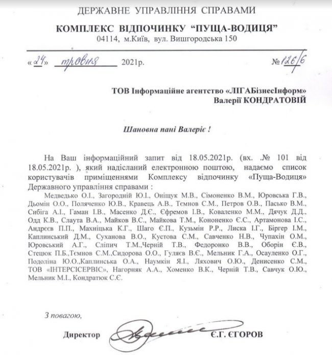 В доме отдыха Пуща-Водица проживают до 50 арендаторов. LIGA.net получила полный список на 18 мая 2021 года, вот он: