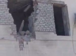 В высотном здании по ул Оборонная, 101 (через дорогу от ТЦ «Фуршет») снарядом пробило дыру в стене на втором этаже, зацепило третий. Пострадал автомобиль, стоящий под зданием. Вокруг много камней и осколков, ветки, лежит бетонная балка. На месте работает скорая. На данный момент информации о пострадавших нет.