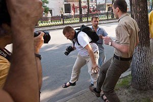 Во время акции, работники посольства Грузии в Украине избили журналиста газеты «Комментарии» Александра Ямкового.