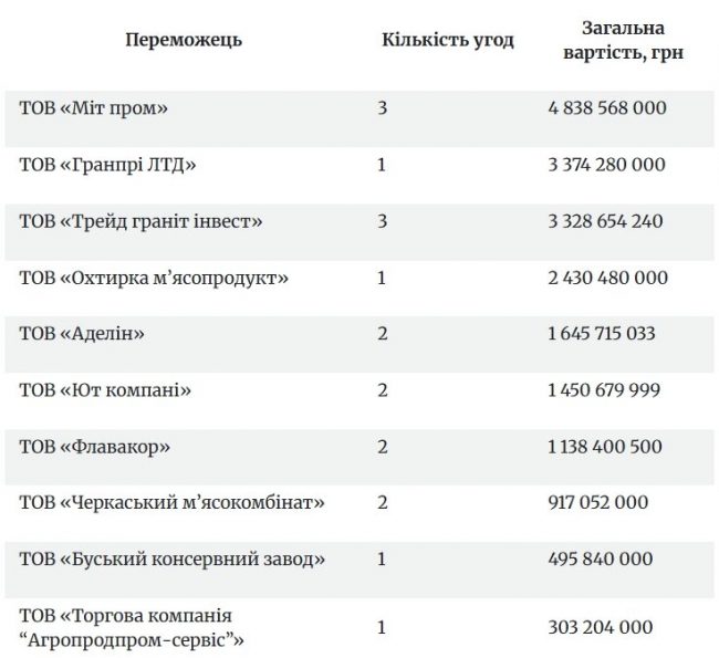 Победители торгов на поставку продуктов ВСУ на второе полугодие 2025 года: