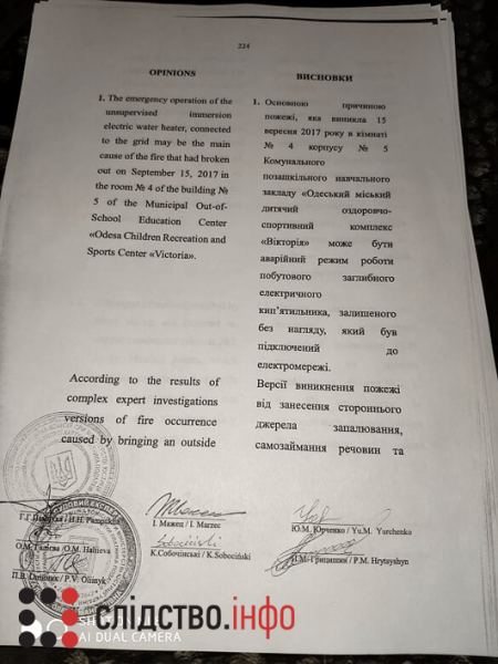 Алексей Мазур держит в руках документ, который насчитывает более 300 страниц. Это международная экспертиза обстоятельств пожара в «Виктории», которую по его просьбе назначил суд. В одесском детском лагере 1,5 года назад погибла его восьмилетняя дочь, и по сей день ни одна экспертиза, назначенная официальным следствием, не дала ему ответы, почему.