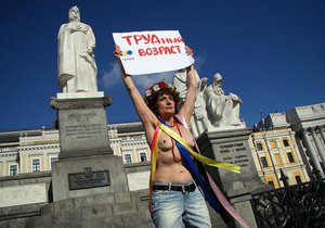 На днях женское движение FEMEN, провело моно-митинг «ТРУДный возраст».