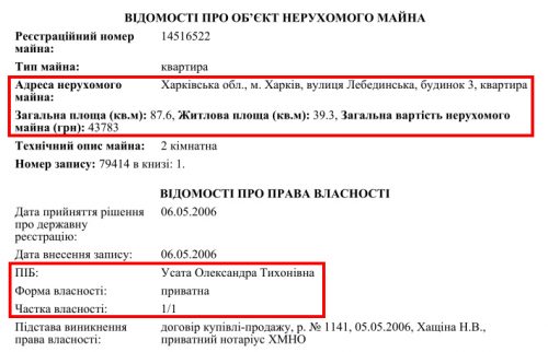 Кстати, в селе Ивано-Шийчино Виталий Усатый имеет также небольшую усадьбу на 55 кв. м. Однако проживает он с семьей, если верить декларации, в харьковской квартире на 98 кв. м., принадлежащей его матери Александре Усатой. Это жилье отсутствовало в декларациях за 2012, 2013 и 2014 годы,хотя судья им пользуется с 2000 года.