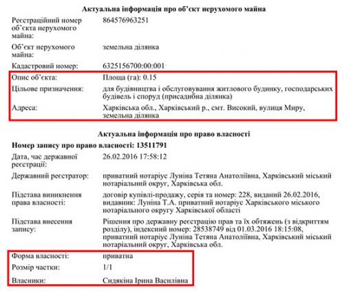Однако в собственности матери судьи Александры Тихоновны находится также два земельных участка в коттеджном городке на окраине Харькова и квартира на 87 кв. м.