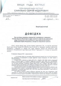 «Мной, членом Высшего совета юстиции Украины (далее ВСЮУ) Сафулько С.Ф., на основании поручения ВСЮУ № 120/0/4-11 от 21.04.2011 года проведена проверка сведений изложенных в обращении гр. Кравец Н.И. о неправомерных действиях судьи Каховского горрайонного суда Херсонской области Таранцова Сергея Петровича».