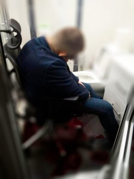 Позже в сети были опубликованы фото с места гибели. На них мертвый мужчина сидел на офисном кресле в туалете. Рядом в крови лежал пистолет, отмечает Украинская правда.