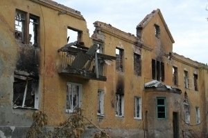 На противоположной стороне села на холме находится областная психиатрическая больница. Двор огражден высоким кирпичным забором, а в нем около 10 двух — трехэтажных зданий. Это была достаточно хорошая позиция для снайперов. Больница, как и детский садик, и жилые дома рядом, пострадали от бомбежек. Нас предупреждали, что территория больницы полностью не обследована — можно нарваться на мины.