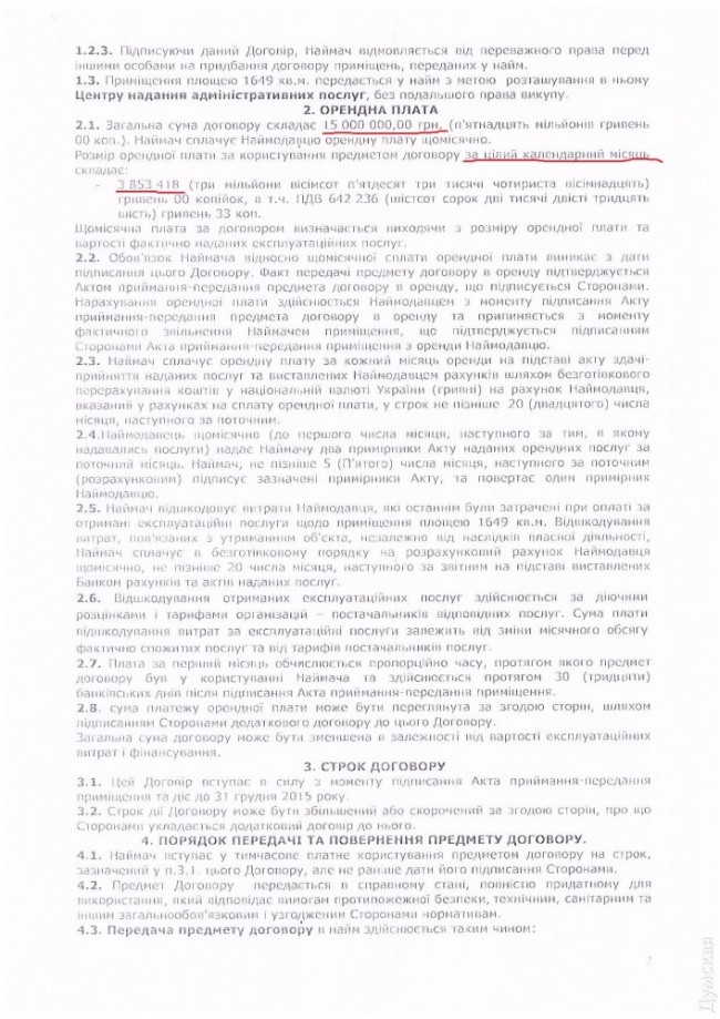 «Думская» неоднократно писала об этой афере. 15 октября 2015 года между департаментом развития инфраструктуры и ЖКХ облгосадминистрации и «Платинум банком» бизнесмена Бориса Кауфмана (владелец одесского аэропорта, участник фонда «На благо Одессы» и партнер Саакашвили) был заключен договор аренды помещения по проспекту Шевченко, 4а с целью размещения в нем центра предоставления административных услуг.