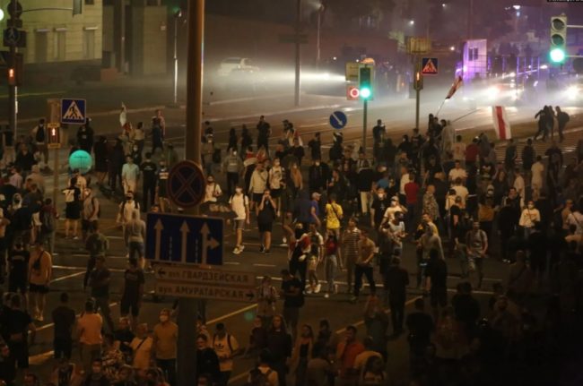 Массовые протесты в Беларуси после объявления первых результатов экзит-полов президентских выборов, по результатом которых лидирует действующий глава страны Александр Лукашенко продолжались в Минске до трех ночи.