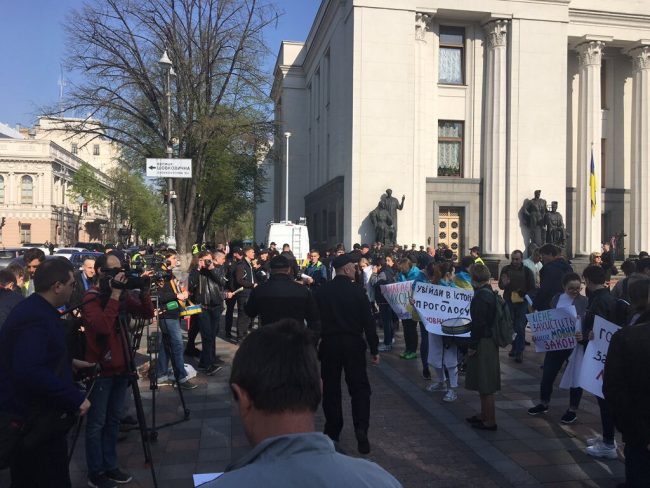 Біля @verkhovna_rada розпочалась акція на підтримку ухвалення закону про українську мову #5670-д pic.twitter.com/toyX9soAEV
