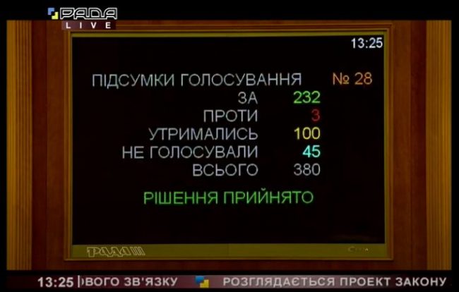 «За» проголосовало 232 народных депутата. Из них 197 голосов дала президентская фракция «Слуга народа».