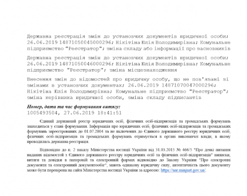 О системной преступной деятельности государственного регистратора Никитиной Ю.В. можно узнать из многочисленных публикаций в СМИ, а вопрос ее незаконной рейдерской деятельности поднимался на Антирейдерском заседании Нотариальной палаты Украины 26.06.2019 г.