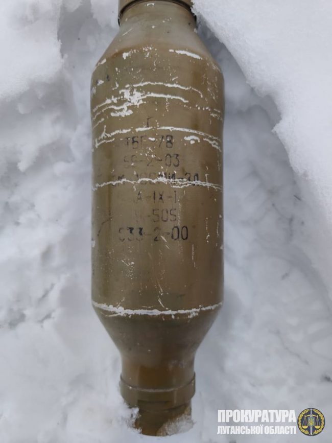 В частности военное средство поражения производства Российской Федерации 2003 года – термобарический заряд ТБГ-7В от РПГ-7В – было обнаружено во время работ по разминированию вблизи участка разведения войск в районе Станицы Луганской.