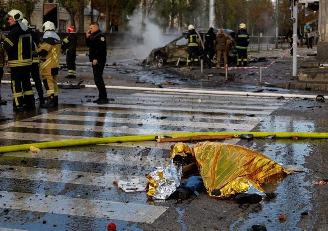 Российские войска 10 октября нанесли массированный удар по Украине, в том числе впервые за несколько месяцев ракетному обстрелу подвергся Киев. Ракетный удар привел к отключению или перебоям с подачей электричества на всей территории Украины. Власти России дали понять, что обстрел — ответ на взрыв на Крымском мосту, который произошел 8 октября.