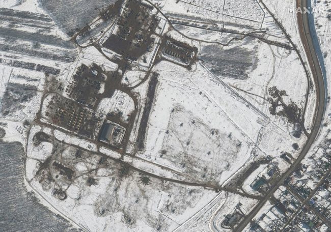 Новые спутниковые снимки (фото выше), сделанные вчера, 20 февраля, свидетельствуют об усиленной активности российских войск, расположенных рядом с северо-восточной границей Украины с Россией.