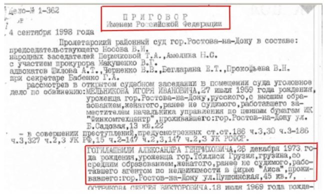 В 1998 году, когда Александр Гогилашвили еще жил и работал в России, он якобы был признан виновным по делу о мошенничестве в крупных размерах организованной группой и подделке государственных документов. Правда, отделался довольно легко – получил пять лет условно.
