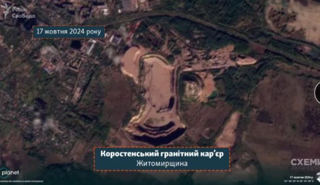 На спутниковом фото, полученном благодаря эстонскому медиа Delfi, и снимках и видео «Схем» действительно можно увидеть затопление на территории Коростенского гранитного карьера:
