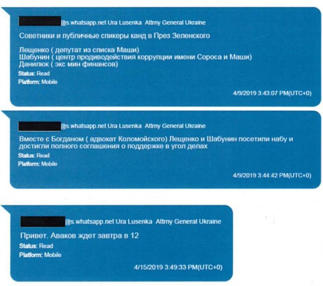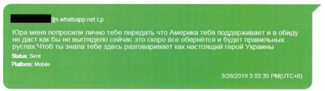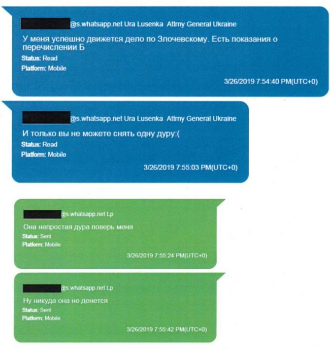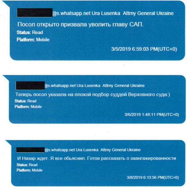 Среди прочего, Луценко в своих сообщениях сетовал на тогдашнего посла США в Украине Мари Йованович. В свою очередь Парнас уверял Луценко, что в США его считают «настоящим героем Украины».