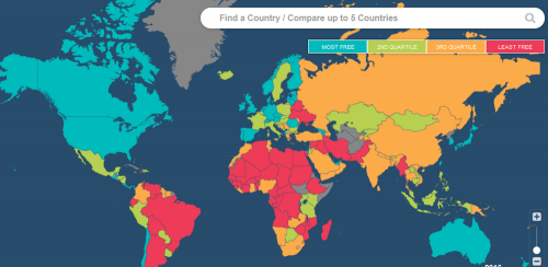 В рейтинге экономической свободы Украина занимает 134 место. Наши соседи по группе самых несвободных экономик — Мавритания, Мали, Конго, Пакистан. При том Пакистан обошел на 2 позиции Украину. Интересно, что у Грузии 7 место, у Эстонии — 13.