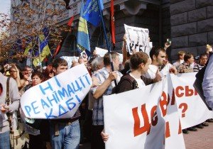 Как сообщает УНИАН, акция была направлена против уголовного преследования историков и цензуры истории и против превышения Службой безопасности своих полномочий.