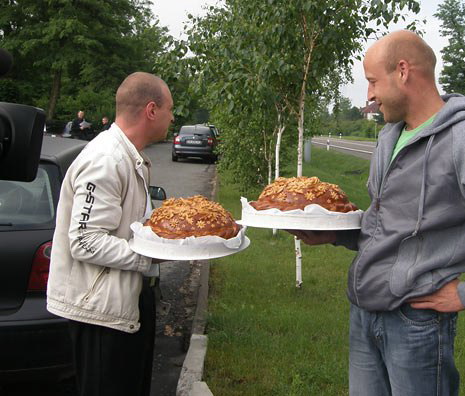 Сельский голова Новых Петровцев Родион Старенький, который накануне потребовал судебного запрета на акцию, встречал журналистов хлебом с солью.