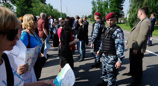 У въезда в резиденцию Межгорье дежурят около 20 сотрудников управления государственной охраны и спецподразделения милиции «Беркут». Они перекрыли проход к "Межгорье".