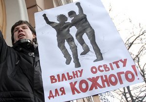 "Главным требованием протестующих, будет не допустить регистрации в парламенте проекта нового Закона О высшем образовании Министерства образования и науки, молодежи и спорта, так называемого законопроекта Табачника в сегодняшней его редакции", - говорит один из организаторов, глава Рады старейшин ВМГО Фундация региональных инициатив Михаил Лебедь.