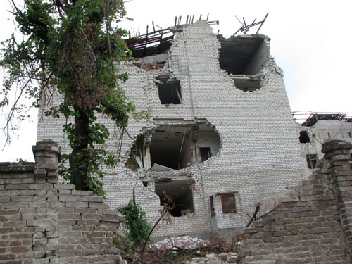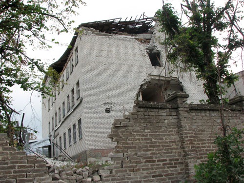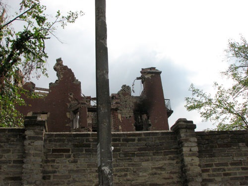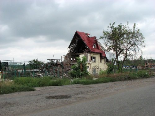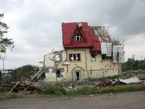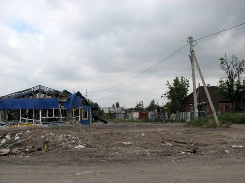 В Семеновке еще теплится кое-где жизнь. Но на ближайшем блок-посту настоятельно не рекомендуют покидать машину и ступать на обочину. Потому что здесь везде можно нарваться на железный "сюрприз", к которым, кстати, периодически добавляются ловушки-растяжки, кем-то устанавливаемые по ночам. Правда, это не мешает безвестным рекламщикам клеить объявления о продаже дешевого цемента прямо на развалинах зданий. Здесь может обрушиться на голову балкон или фрагмент стены. "Кирпич на голову" - здесь не шутка, а вполне реальная возможность.