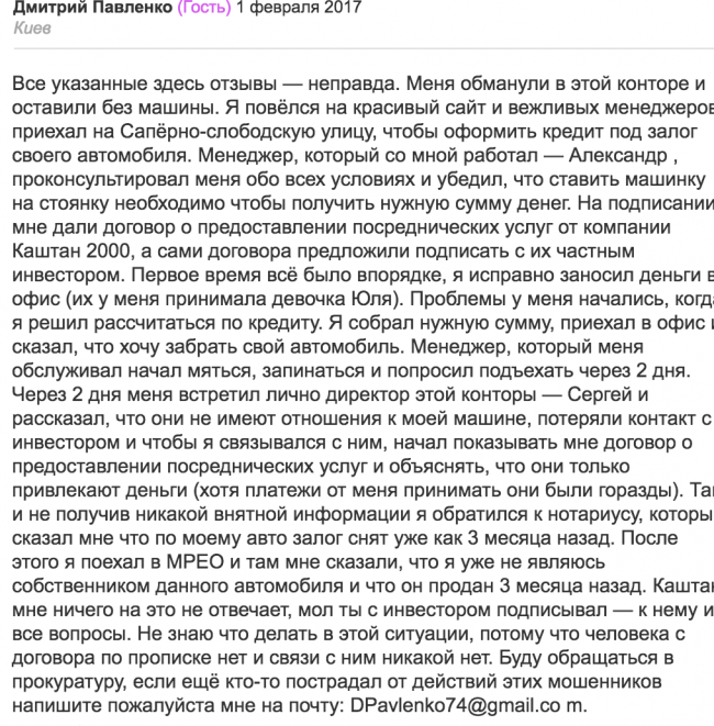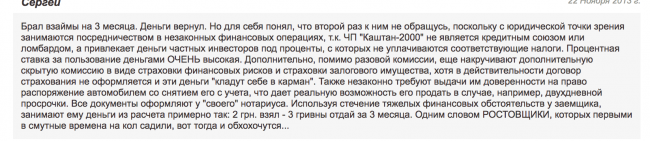 Пациент Сергей Позняк, по мнению его ближайших коллег, многие годы стремился выбраться из своего рутинного «ростовщического гешефта» и выйти на уровень стабильного среднего отечественного предпринимательства. Но, увы, все его попытки заканчивались полным фиаско и возвращали горе дельца на его первоначальный уровень. Осознавая собственную беспомощность и полностью разочаровавшись в реальной жизни, Позняку только и оставалось как постоянно "отгавкиваться" от назойливый кинутых им клиентов, ведь на самого Позняка и его ломбард "Каштан 2000" регулярно сыпались исключительно негативные отзывы. Представляем несколько: