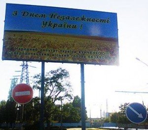 Накануне Дня Независимости в Северодонецке появились поздравительные бигборды. На них стояла фамилия городского головы Валентина Казакова.
