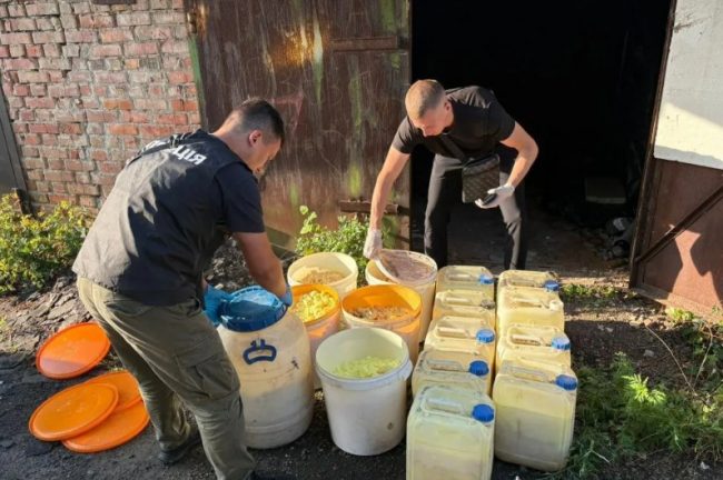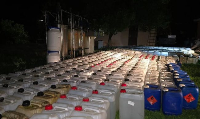 «Полицейские при силовой поддержке бойцов роты полиции особого назначения ГУНП в Черкасской области провели обыски по местам проживания и пребывания фигурантов. По результатам обнаружили и изъяли более 10,4 тысячи литров прекурсоров, из которых можно было бы изготовить 2 тысячи кг мефедрона. Кроме того, изъято 250 кг прекурсора фенилнитропропен, а это 250 кг психотропного вещества амфетамин, а также 29 кг мефедрона, лабораторное оборудование, мобильные телефоны и «черновые» записи», – отчитались в Нацполиции.