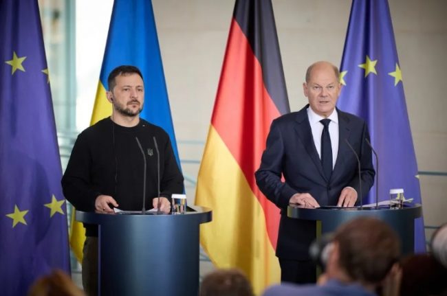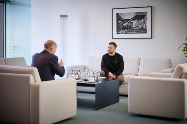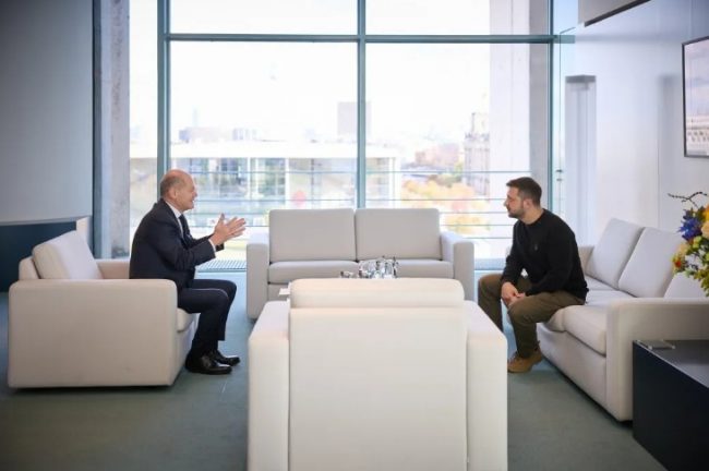 Зеленский якобы попросил у федерального канцлера разрешить дальнобойные удары по военным целям на территории РФ. Также – предоставить гарантию быстрого вступления страны в НАТО.