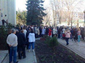 Сегодня, 21 марта, у Киевского районного совета дежурят сотни симферопольцев. «Крымчане неисправимы: все та же паника, результат которой огромные очереди», - комментирует ситуацию в Фейсбуке крымский журналист Заир Акадыров.