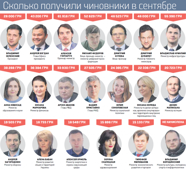 При этом украинские министры недовольны своими низкими зарплатами. Так, по словам министра юстиции Дениса Малюска, его зарплаты в 29 тысяч гривен не хватает на содержание семьи. Чиновник подчеркнул, что раньше ежемесячные расходы семьи составляли приблизительно 100 тыс. грн, поэтому его оклад нужно повысить как минимум до 80 тысяч гривен.